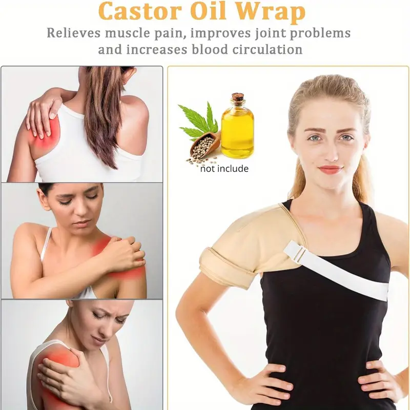 - Relieve pain and stiffness: The soothing effect of castor oil combined with heat can loosen tight muscles, ease joint stiffness, and reduce general shoulder discomfort.
