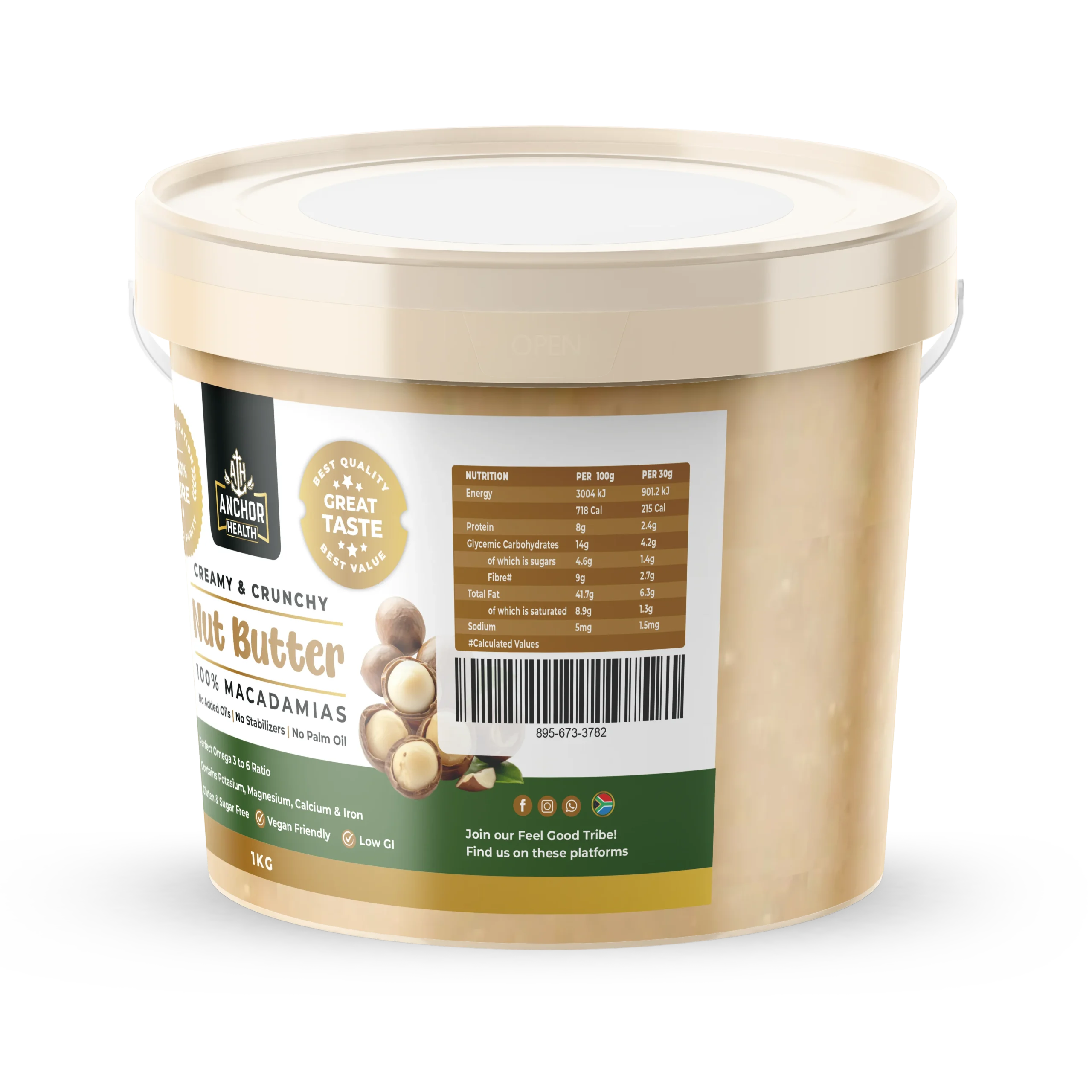 Chrunchy Macadamia Nut Butter 1kg | Nutrient-Dense Spread for Daily Wellness
